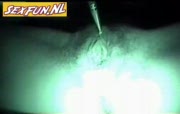 Mastuberend met de glazen dildo krijgt ze spuitend een orgasme